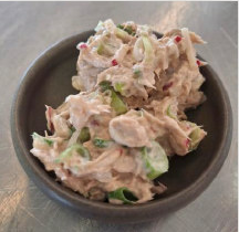 Tunsalaten anrettes i et fad og pyntes evt. med friske krydderurter.