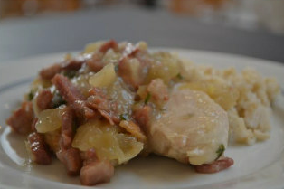 Skær filet/bacon i tern.
