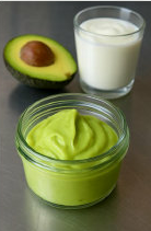 Avocado og ylette blendes eller moses sammen med en gaffel til en smørbar konsistens.