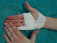 Start med at bruge hånden til lette gøremål inden for smertegrænsen, og sørg for at holde forbindingen tør og ren.