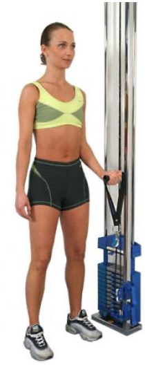 Udgangsposition: Stående med siden til vægten med ryggen i neutralstilling. Fat om håndtaget med den ene hånd.